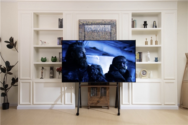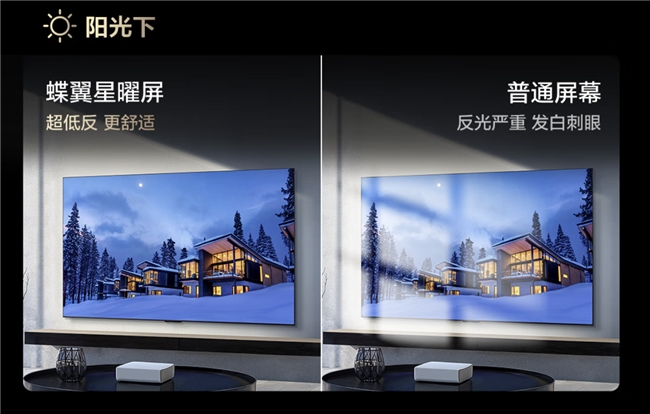 再说抗反射,这块屏幕是内外双低反设计,外层用了行业最高等级的0.5%LR低反膜,内部液晶分子排列角度达到89度,让整机反射率低至1.8%。对比普通电视大概5%左右的反射率,这几乎就是质的差别。用大白话解释:白天开着窗拉开窗帘看综艺,也不会满屏反光;晚上关灯看电影,也能安心沉浸其中,不会有恼人的光点干扰。观影氛围感直接拉满。