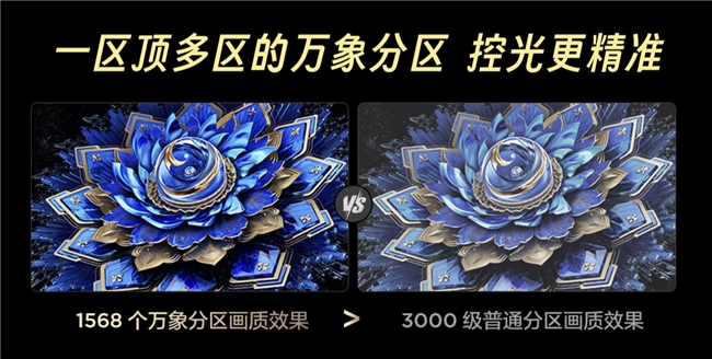 跟其他电视单纯增加背光分区得方式不同,TCL强调数量与质量并重,从电视背光到显示成像7大环节升级优化,万象分区的控光效果是普通分区的数倍。换句话说,1个万象分区顶好几个普通分区,我买的85吋机型有1568个万象分区,比3000级普通分区的控光效果还要出色,现在再看星空夜景时,光晕和漏光统统消失,暗场画质终于能撑得住大片的质感。