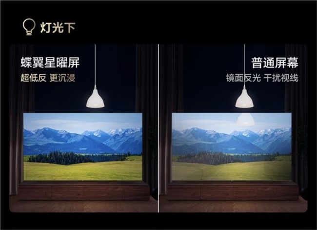 但其实,抗反技术几年前就有了,只是这段时间随着大家对画质要求变高,才慢慢被更多人关注。例如在电视领域,目前主流的方案主要有两种:AGLR屏和镜面低反屏,其中AGLR屏企图通过在屏幕表面做微结构处理打散外界光线来减少反光,最终既没获得理想的抗反效果,强光下依然会有模糊的光雾感,又因为其磨砂特性会让画面边缘易模糊、色彩通透度下降,再加上成本升高,对消费者而言属于是花钱买罪受;而镜面低反屏就不一样了,既能有效抑制外界光线反射,明亮环境下也不会出现刺眼光斑或倒影,而且它不会损伤画质,反而能让画面色彩更鲜艳、细节更清晰、对比度更出色,实现“抗反与画质两手抓”,如今早已成为高端显示设备的标配方案。