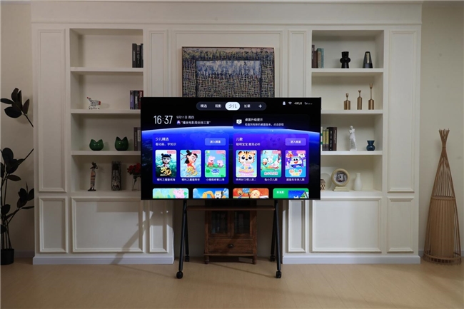 解决了看的问题,T7L Ultra同样照顾了用的感受。T7L Ultra搭载的灵控系统3.0,无开机广告,老人小孩都能轻松上手。外观上,采用了超薄一体化设计,机身最厚处≤60mm,挂在客厅可以当做一幅画,提升客厅格调。