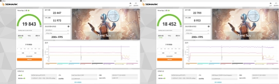 根据测试结果我们可以看到,在3DMARK Time Spy中,英特尔酷睿Ultra 5 230F平台得到了19843的综合分数,AMD锐龙5 9500F得到了18452的综合分数;不过AMD锐龙5 9500F平台的显卡分数达到了22703,较英特尔酷睿Ultra 5 230F平台得到的22447显卡分数微高。