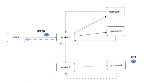 •上图所显示的worker1 接收到消息,转发到worker2,以及回包worker2转发到worker1,就采用了NJet内置的event框架,但10ms级别的处理性能,远不能满足消息服务器的处理性能指标要求,甚至由于加入了跨进程通信,出现了多worker处理能力远小于单worker处理能力的荒谬情况。