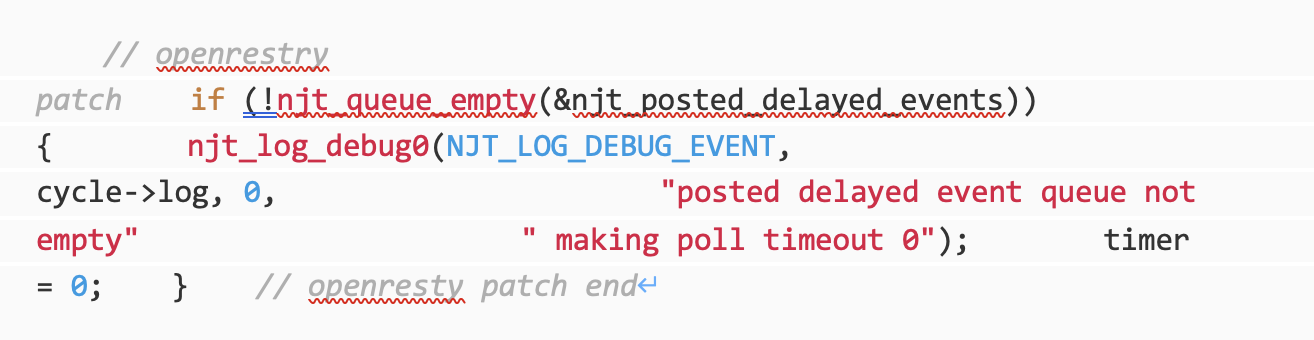 无独有偶,在我们考虑如何传递参数进ngx_process_events_and_timers时,我们发现了openresty的特定patch。