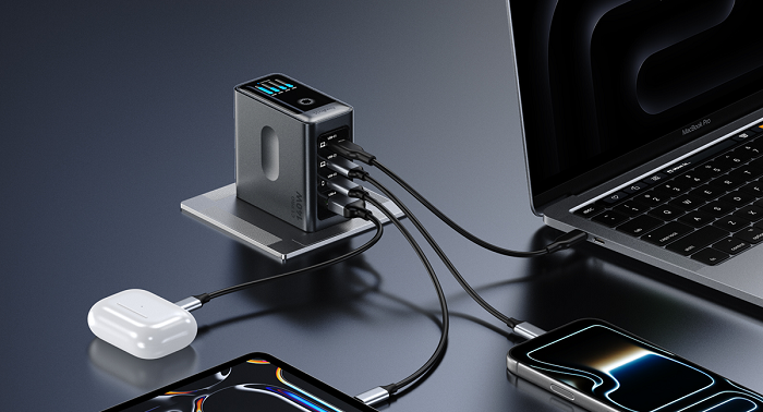 在优雅克制的设计之下,海赛力C1 Pro搭载先进的氮化镓(GaN)技术,在小巧体积内集成了高达140W的总输出功率。其配备的3C1A四接口,能从容应对多设备同时充电的复杂场景。无论是为MacBook Pro进行140W全速供能,还是为手机、平板、耳机进行智能功率匹配,C1 Pro都游刃有余。
