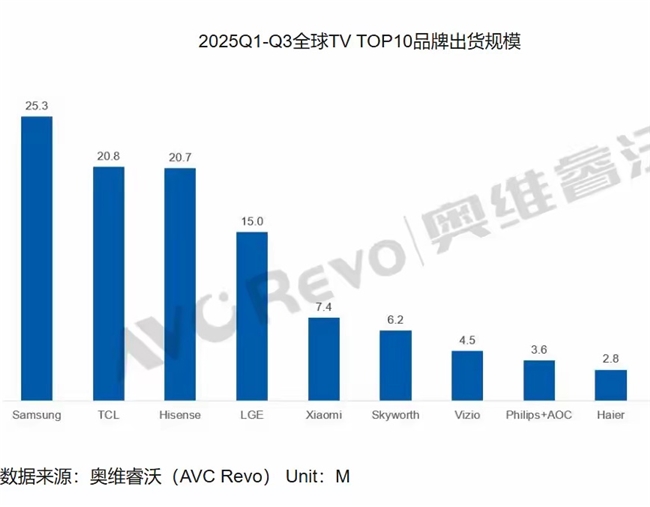 这份优秀成绩单,是TCL全球顶尖实力的缩影——它不仅连续多年稳居全球电视销量前二,其Mini LED电视更已连续两年斩获全球销量第一。权威市场调研机构奥维的数据可进一步佐证这一实力:TCL在今年Q1-Q3全球电视出货量达20.8万台,既延续全球出货量前二的领先态势,更成功摘下国产品牌销量桂冠。从全球市场到本土主场,全方位展现出强大的行业统治力。