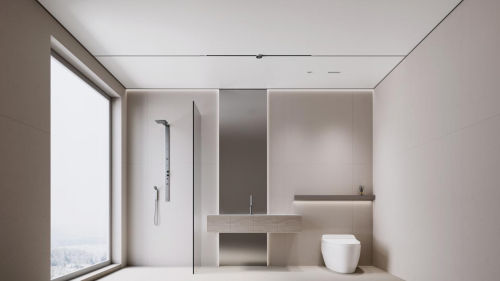 重新构想浴室疗愈空间的本质打造灯、顶、电器一体化集成的天境空间保留纯粹、流畅、沉浸的感官体验。