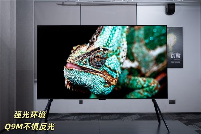 除了核心技术革新,Q9M在配置逻辑上也充分考虑到了家庭用户的实际使用场景。其搭载的蝶翼星曜屏,不仅拥有7000:1的超高原生对比度,让黑色表现更纯粹,避免暗场画面发灰;同时还使用了内外双低反设计,让整机的反射率低至1.8%,让Q9M即使身处白天阳光直射的客厅,用户也无需拉窗帘观看,再搭配2000nits的峰值亮度,完美解决了家庭观影的“反光”困扰。