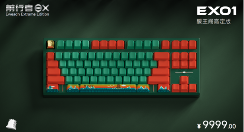EX01滕王阁款机械键盘:这款在滕王阁发布会首秀的产品,将其设计灵感源自《滕王阁序》中“潦水尽而寒潭清,烟光凝而暮山紫”的诗意转化为可触摸的实体。采用6063航空级铝合金一体成型机身,复刻古建筑飞檐斗拱的结构美学,并以24K金箔点缀键帽。它不仅是输入工具,更被设计成一件“可触摸的文化遗产”,展现了前行者将古典文学色彩哲学转化为现代工业语言的能力。