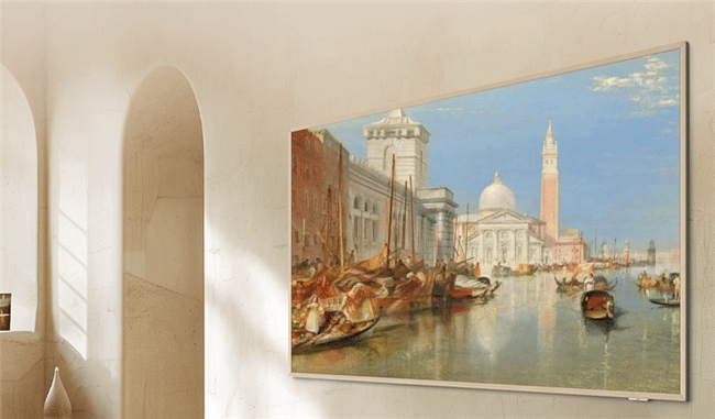 第一重惊喜,是把“轻装美学”刻进骨子里的外观设计。A400 Pro 延续了艺术电视的核心追求,将轻薄与颜值做到了极致:39.9mm 的超薄机身仅相当于一本精装书,整机纯平设计实现无缝贴墙,与家居空间自然融合;一体折弯工艺打造的浅胡桃木边框,与屏幕浑然天成,既省去额外购买画框的成本与麻烦,又让电视挂在墙上时宛如一幅精致画作。