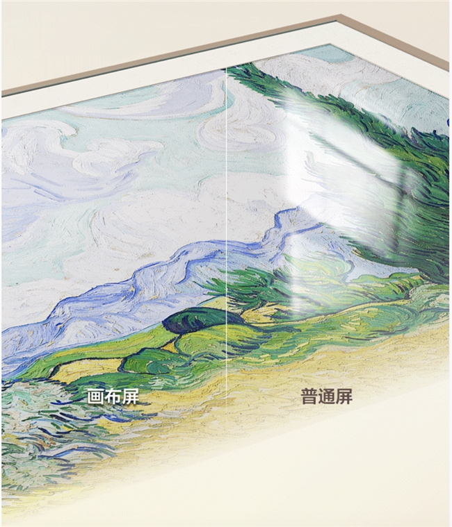 同时为了让画质输出更稳定,A400 Pro还用上了画布屏,叠加纳米微晶、AG25防眩、环境光感应和哑光显示四大技术,不仅能有效抵抗环境光反射,无论白天夜晚、什么光线角度,都能让我们欣赏到清晰的“艺术画作”;哑光显示还能还原真画的纹理质感,在家看屏幕就和逛艺术展看原作也就没什么区别了。
