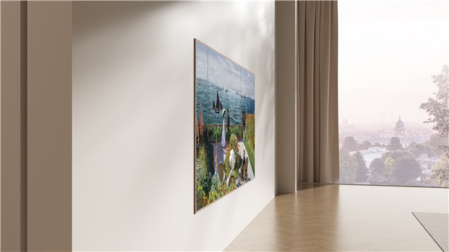 第一次安装好电视我就被它的外观惊艳到了。机身厚度只有39.9mm,比一本精装艺术画册还要纤薄。背部采用纯平设计,没有任何凸起,挂上墙后与墙面严丝合缝,毫无缝隙,宛如一幅精心装裱的油画悬挂在客厅中央。朋友来家里做客,第一反应都是:“你这是新挂了什么名画?”完全没有意识到这竟是一台电视。那一刻,我终于明白,什么叫“家电隐形于空间”。