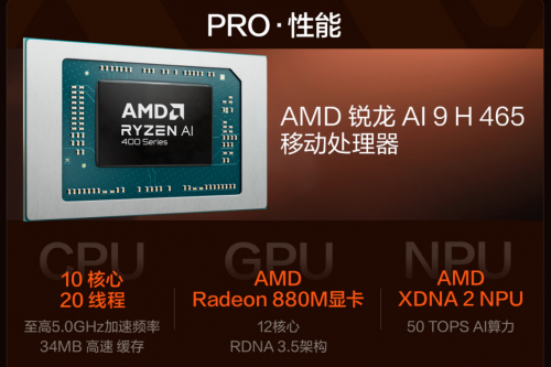 当AI重构生产力,新时代下的高效办公创作离不开强劲AI算力支撑。全新AMD锐龙AI 400系列处理器采用AMD XDNA 2 NPU 架构,NPU 算力高达 50 TOPS,可以直接在笔记本上直接运行生成式 AI 应用、大型语言模型和 AI 助手,为安全、疾速、高能效的 AI PC 体验提供保障。