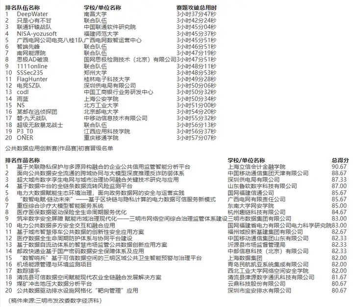 公共数据安全赛(攻防赛)初赛晋级名单