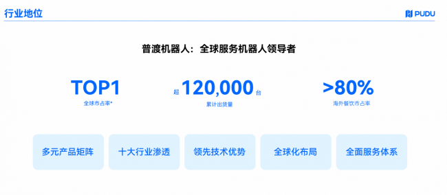 普渡科技是全球服务机器人领域领导品牌,也是商用机器人领域龙头企业,具备移动、操作、AI三大核心技术,率先完成专用、类人形、人形机器人完整布局,拥有服务配送、商用清洁、工业配送、具身智能四大产品线,业务覆盖全球80多个国家和地区,累计出货量突破12万台。